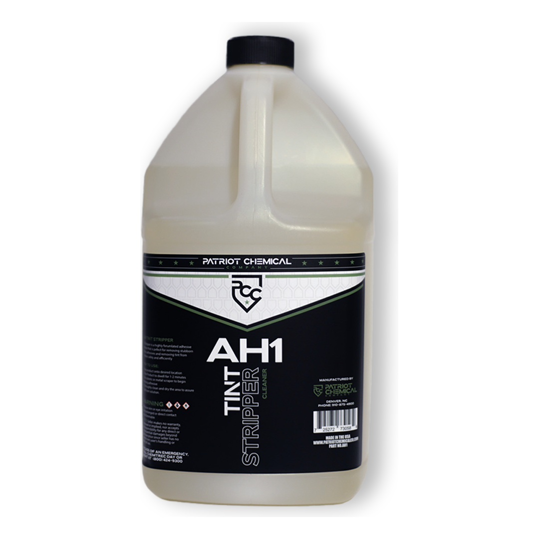 AH1 TINT STRIPPER - is a highly formulated adhesive remover that is perfect for removing stubborn left on adhesives and removing tint from windows safely and efficiently.