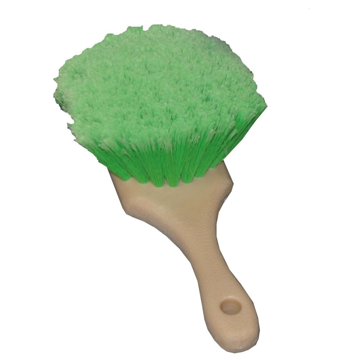 Flagged-tip bristles are resistant to acids and detergents, and are staple-set into a sturdy foam block. Provides for gentle washing of any surface.